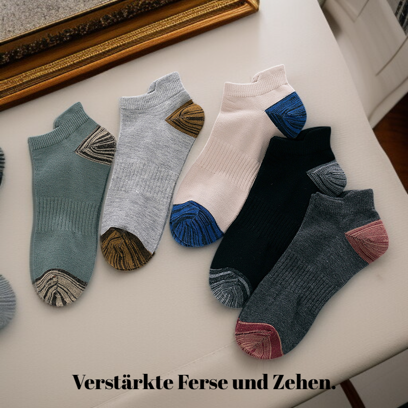 ● Hochwertige Herren Socken aus atmungsaktiver Baumwolle sorgen den ganzen Tag für ein angenehmes und trockenes Tragegefühl. ● Verstärkte Ferse und Spitze erhöhen die Haltbarkeit und bieten optimalen Komfort bei jeder Aktivität. ● Stylisches und zeitloses Design passt perfekt zu Business-Outfits und Freizeitkleidung – ein Must-have für jeden modernen Mann. ● Elastischer Bund verhindert Verrutschen und sorgt für einen sicheren Sitz, ohne einzuschneiden oder Druckstellen zu hinterlassen. ● Pflegeleicht und maschinenwaschbar – die Socken behalten auch nach vielen Waschgängen ihre Form und Farbe.